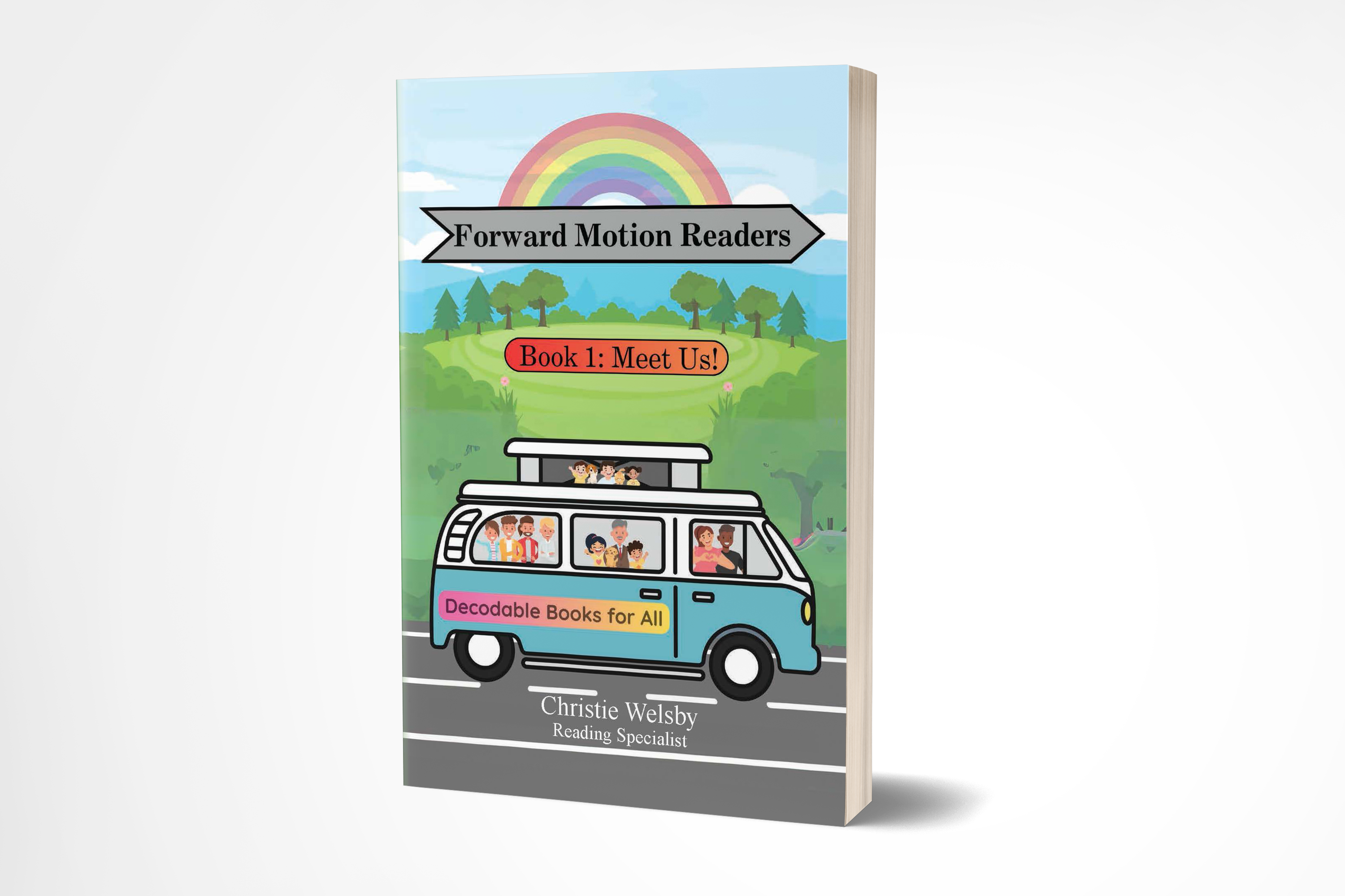 In Forward Motion Readers Book 1: Meet Us!, Welsby takes a scaffolded approach to the goal of independent reading. “A ‘reader’ is a book that is used to learn to read. In that way, my book is similar to the familiar Dick and Jane readers, but written with a clear phonics progression,” Welsby says. “The end of my (planned) fifth book will be written at approximately the end of second grade/beginning of third grade reading level.”